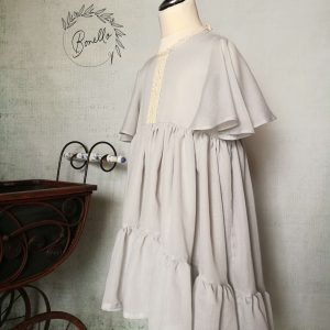 Levendula lila selyem kisruha virágokkal díszítve 2-3 éves méretben
