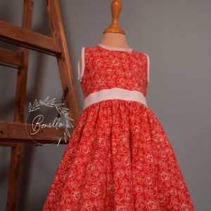 Piros rózsamintás retro kinézetű kislány ruha 104 méretben